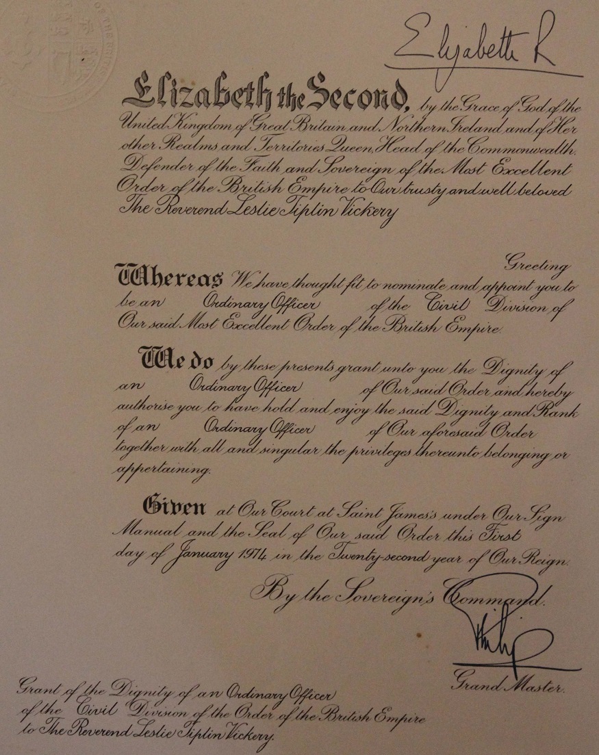 OBE – Leslie Tiplin Vickery